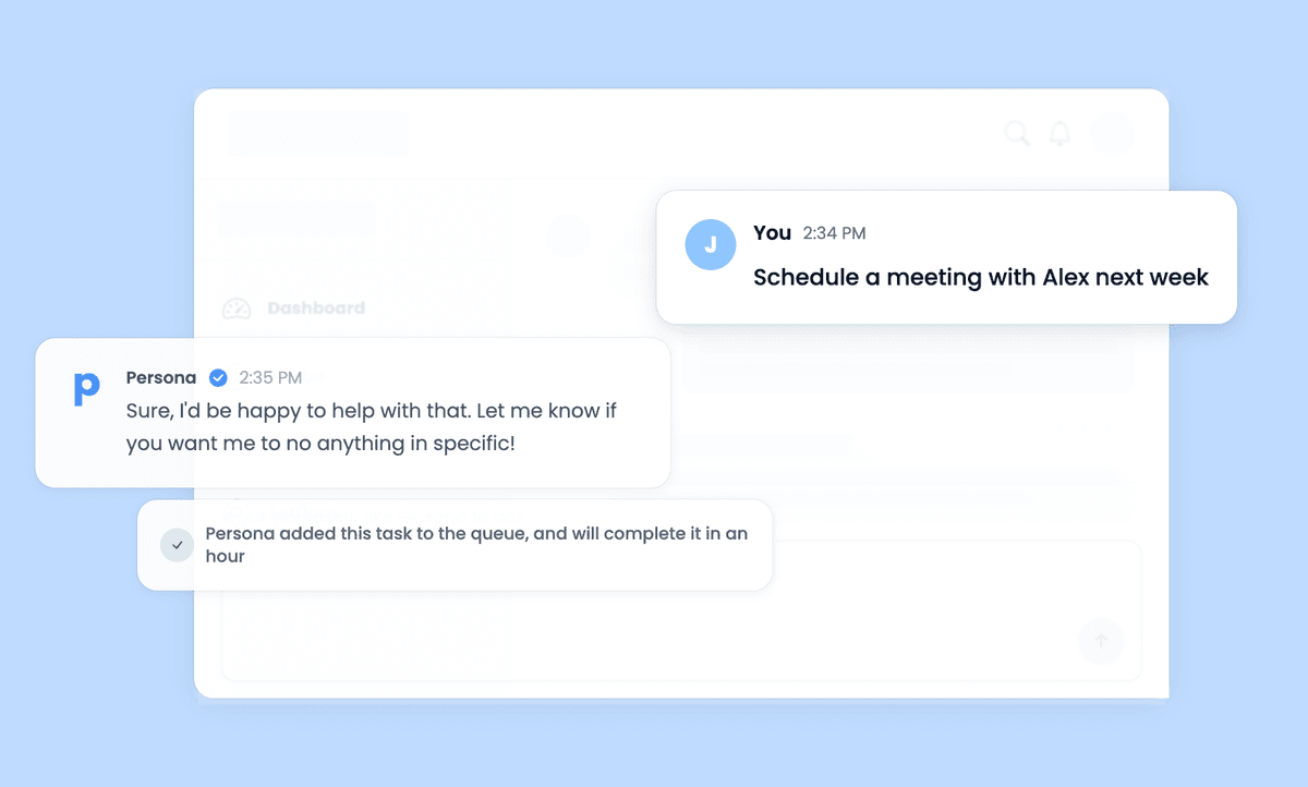Whether you're a founder scheduling investor calls, an executive managing a packed calendar, or a sales rep following up with dozens of prospects — Persona handles the coordination so you don't have to. One seat or a hundred, it fits how you work.